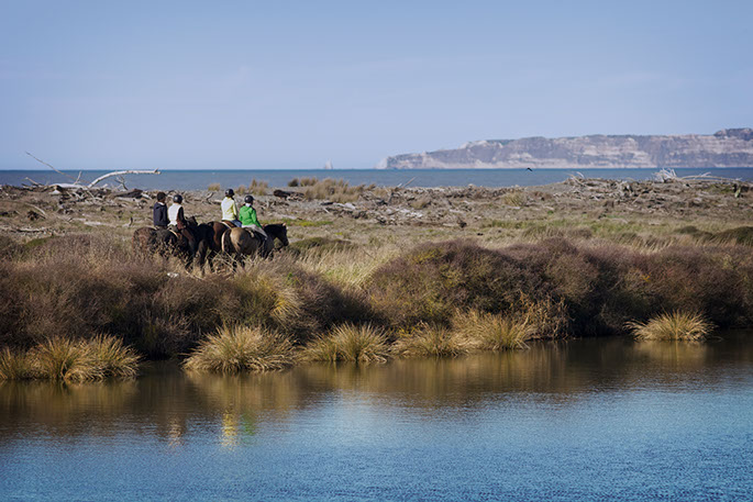 Calling the horses at Cape Kidnappers.